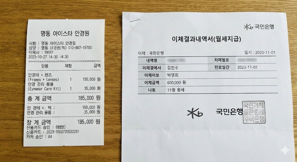 - 체크: 안경값, 월세, 기부금 등 홈택스에 없는 항목은 종이 영수증을 따로 챙긴다.